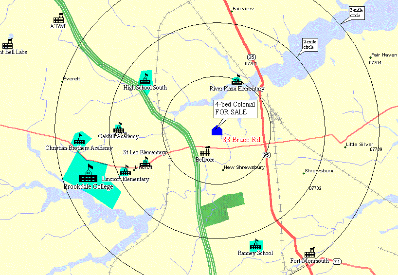 Labs (7.0 miles), AT&T (7.0 miles), and Fort Monmouth Army Communications