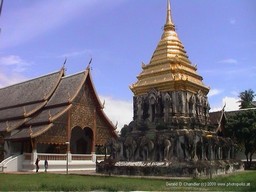 We made several visits to Chiang Mai. The first ones were made in a group which did not leave us enough time to wander at leisure. So we came back for five days by ourselves. Part of that time was spent getting annual medical checkups and part of it was spent in the area 100+ km to the south, which we got to by rented car. Below are two photos of one of the many temples that we visited while in Chiang Mai. Although it is difficult in retrospect to separate each from the other in our minds, we have to say that even so, every one was well worth visiting. They are all different and yet of course all are similar. This wonderfully ornate temple is called Wat Suan Dok and is located on the grounds of Chiang Mai University.We visited it with Pi Dom and Pi Bol after a most delicious lunch of Khao Soi (noodles).