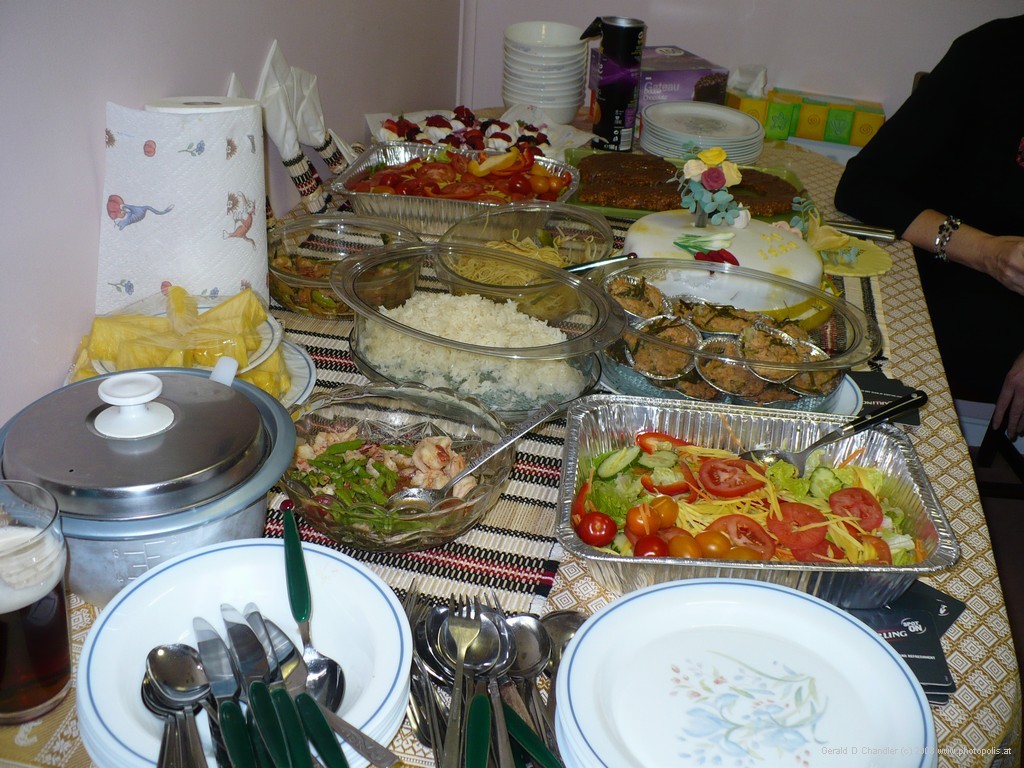 We'd arrived hardly a week before the end of July and that is Birthday and Anniversay week. It's Dave's birthday and Jhap's birthday and Jan's birthday and Chris and Sam's anniversay. So our place was decorated, particularly for Jhap's 50th birthday, and we got stocked with party food, which is actually real (and real delicious) food when Jhap makes it.