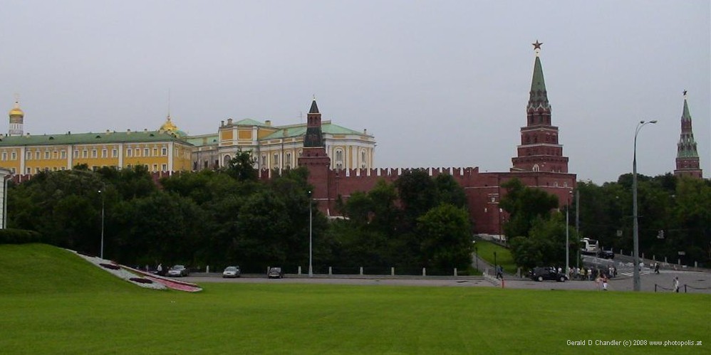 We had just visited Moscow University and walked the 1/2 km north to the Moscow River. There on a bluff above the river, the highest natural point within the city, we learned many people come to get their wedding photograph. So on the spur of the moment we celebrated our anniversary a few months early. Travel 2005 | 2004 | 2003 | 2002 | 2001 | 2000
