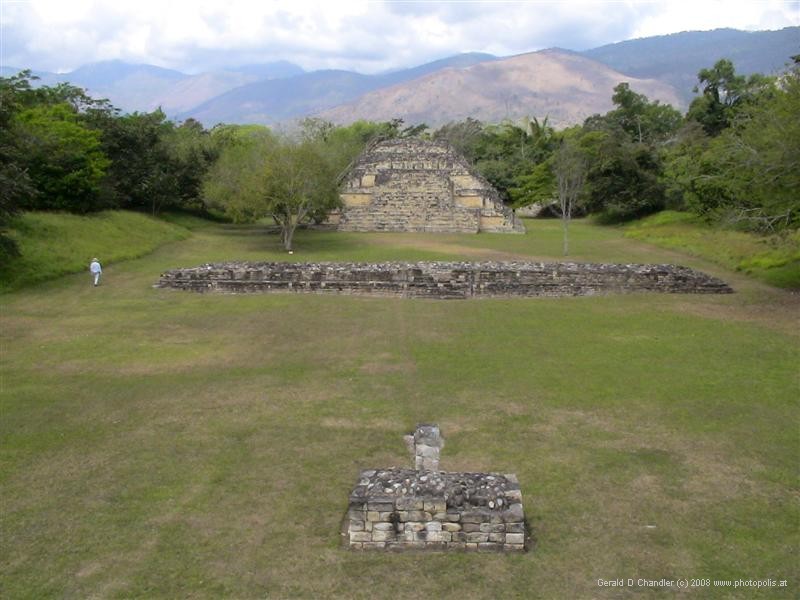 When we planned our travels we had heard of two of the four or five great Mayan sites: Palenque and Chichen Itza. In fact it was the description of Palenque in a used copy of "Let's Go Mexico" that convinced first Gerry and then Jan that southern Mexico had some things worth going a long way to see. From "Let's Go" we learned that two other sites equalling them existed outside Mexico: Tikal in Guatemala and Copan in Honduras, but the descriptions were brief. Our ignorance was great. As the map shows there are many more sites. Of those shown, we eventually visited Uxmal and Tolum in Mexico and Quirigua in Guatemala. Mayan sites that we visited which are not on the map are Tohcok (so small admission is not charged) and Copal in Mexico, four sites in Belize (Lamanai, Cahal Pech, Xunantunich), Ceibal in Guatemala (which we reached by boat), and El Puente (near La Entrada) Honduras.