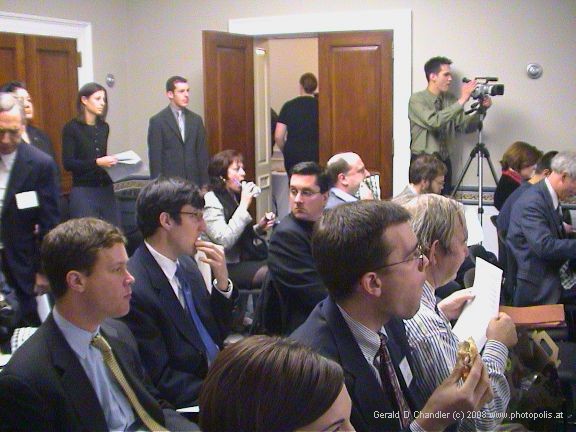 The Cato Institute is a libertarian public policy think-tank that spends much of its effort lobbying Capitol Hill decision makers. All of their 'briefings', as they call them, are held in the Longworth House Office building, just beside the Capitol. We attended two of them in December and were happy to learn that registering for a briefing entitles you to a free box lunch. They are obviously anxious to attract as many House and Senate staffers as they can. The format is fairly standard. One, two, or three speakers talk for 20 minutes each followed by a Q&A session. Total Information AwarenessThe first talk we attended was on the new policy being discussed by the administration that involves doing so-called data mining (checking records of credit-card transactions among others) to weed out terrorism suspects. The Cato Institute thinks that the policy is an assault on civil liberties and so is against it.