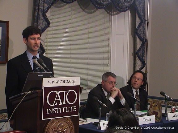 Environmental PolicyThe second talk that we attended was on Environmental Policy for the 108th Congress. We were surprised to learn a couple of days later that the talk was televised (C-Span, Monday Dec.16 at 2 p.m.). The policy recommended was to remove the policy decision-making power from regulatory bodies such as the EPA and restore it to its rightful place in the Congress.