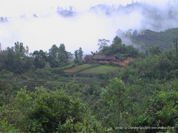 Our next two days formed a kind of hiatus in our great circle from Hanoi to the northwest and back. We spent them in Sapa at the Cat-Cat Guesthouse. We had a nice room that opened onto a large terrace that would have had a fabulous view of the valley below and across the valley the range of mountains that culminates in Fansipan, Vietnam's highest peak at 3,000+ meters. Sadly for us, we arrived just as a day of rain set in and so had only fleeting views.