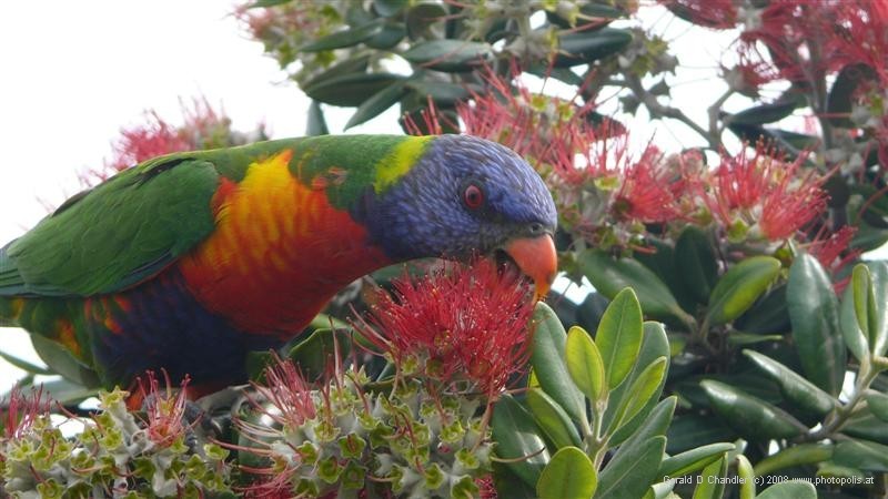 No this snap wasn't taken in a zoo and the parrot isn't someone's caged or trained pet. This lovely creature and its mate swooped and dived over our heads at one point on our walk and Gerry tracked the pair down to a nearby tree and got this lovely shot. We were entranced and spent a good 20 minutes just ogling them as they fed and made parrot noises while all the locals wandered by oblivious to the wonder that is their country.