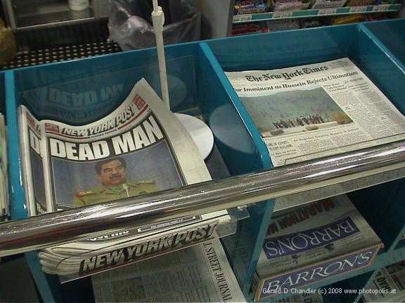 As it happened our arrival coincided with the beginning of the Anti-Saddam war in Iraq. Of course everybody everywhere had been speculating what Saddam Hussein would do and what George Bush would do. Would one fold? Would the other act decisively? We discussed this during dinner. As we have different points of view the discussion was lively, but friendly. All the while the TV had been on in the other room. Suddenly we realized what news had flashed onto the screen and off all four of us went to see what reality was, as opposed to our speculations.